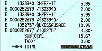 I used self-service checkout, so it printed my receipt on a blue ribbon.