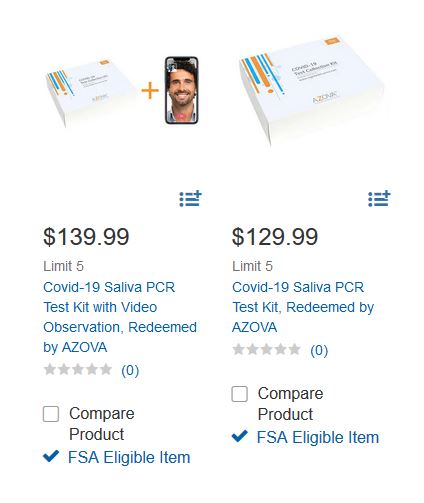 This is a saliva test – not a dreading nasal swab. They are priced at $129.99 and $139.99. The $139.99 kit contains Video Observation for travelers (I don’t know exactly what that means).