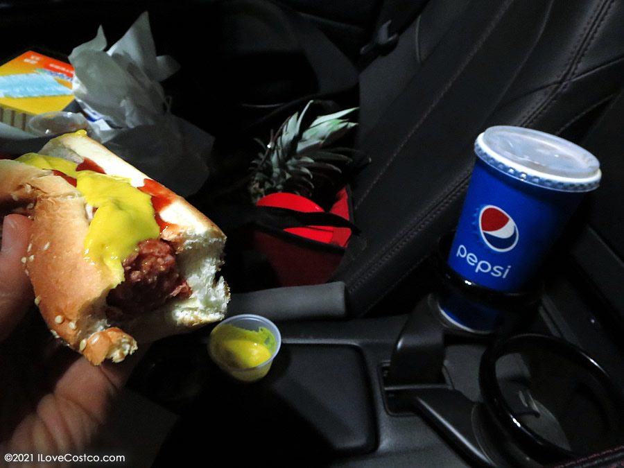 After shopping, I went back to the tire center, but my car was not ready. So I stood outside and ate some almonds and Jelly Belly. Finally, after getting my car back, I bought a hot dog and ate it in my convertible with the top down. Costco is still selling hot dogs in pandemic style. The clerk handed me the catchup, mustard, and soda. The hot dog was enjoyable. Costco hot dog is such a treat. It makes people happy.