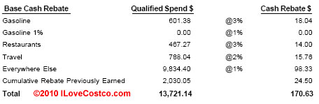 Last year, 2009, I received $36.20 rebate from Costco, American Express card.