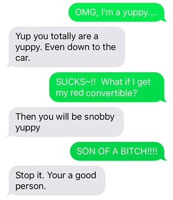 I texted my friend about what I bought. Then my friend pointed out that I was a yuppy.